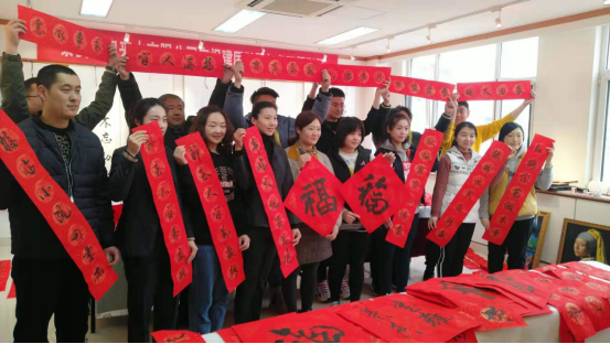 vvvv春節(jié)前夕,泰安市自來水有限公司開展“送萬福 進萬家”書法公益活動,此次活動邀請公司書法愛好者6人,現(xiàn)場書寫、創(chuàng)作、贈送春聯(lián)和福字共計200余幅。